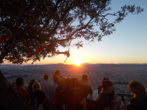 Sunset from Mt. Lykavittos 15 Αυγούστου 2016 0 We left the Underground at Syntagma/Σύνταγμα and walked through the Kolonaki/Κολωνάκι district, going up Ploutarchou/Πλουτάρχου Street until we reached the cable car which goes up the mountain.